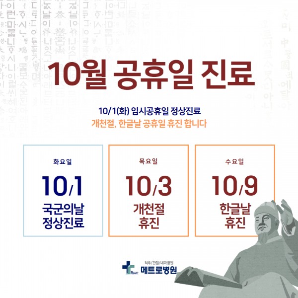 메트로병원의 10월 진료 일정을 안내 드립니다.