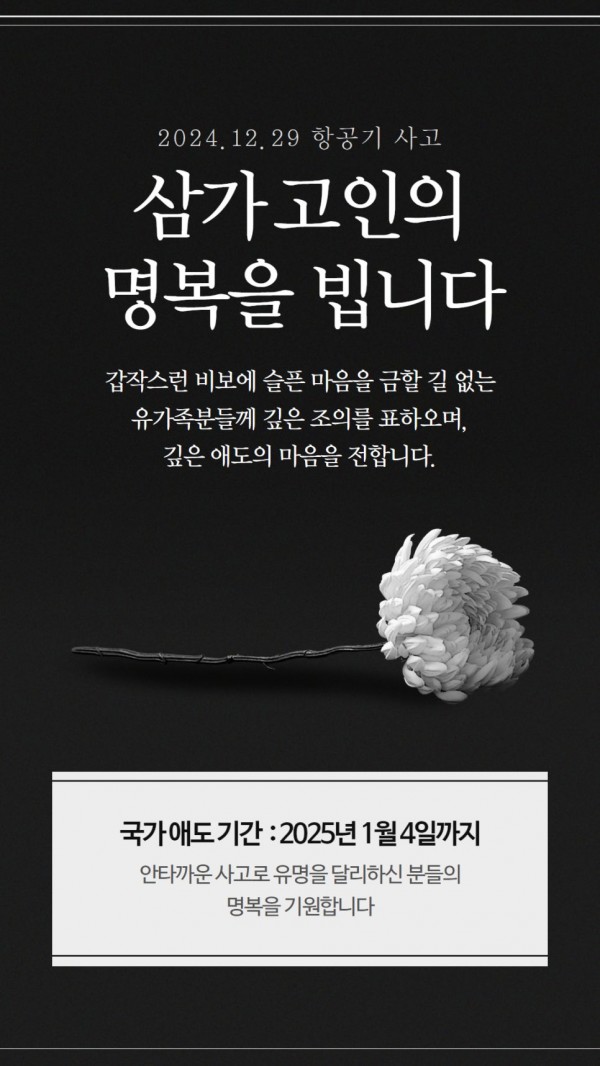 제주항공 여객기 사고에 깊은 애도를 표합니다