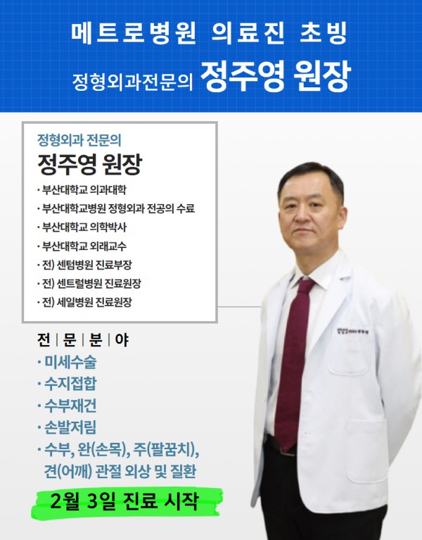 메트로병원과 2025년 2월부터 함께 하실 의료진을 초빙하여 소개 드립니다.