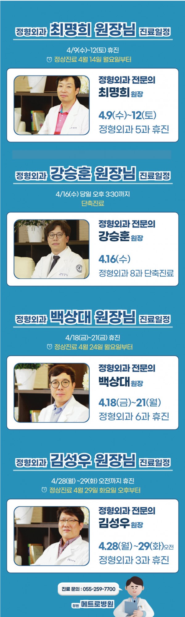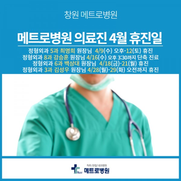 창원 메트로병원 정형외과 4월 휴진일 안내
