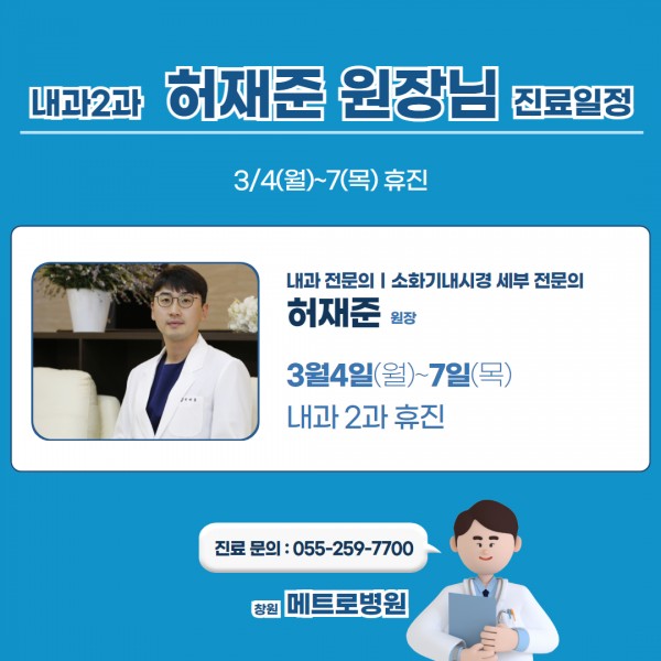 메트로병원 내과 2과 허재준 원장님 3월 진료일정