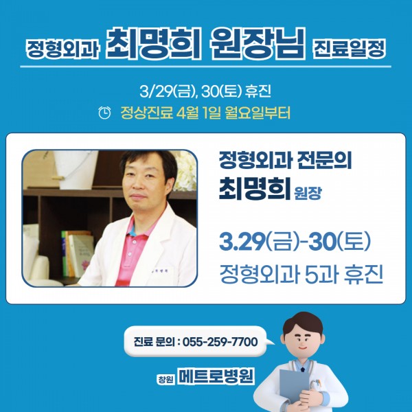 3월 29일 금요일과 30일 토요일 양일간 휴진 입니다.