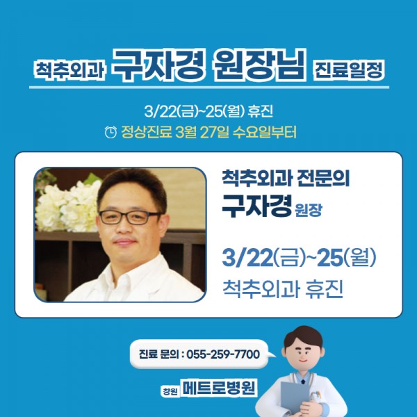 척추외과 구자경 원장님, 정형외과 5과 최명희 원장님 진료 일정 안내