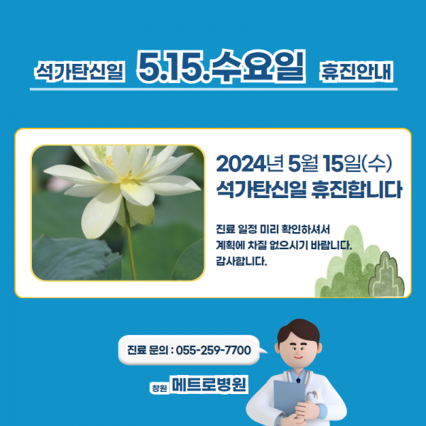국공휴일인 부처님 오신 날을 맞아 휴진 합니다.