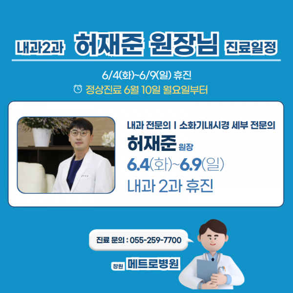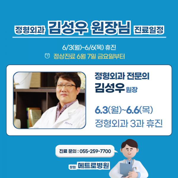 메트로병원 정형외과 3과, 내과 2과 6월 진료일정 안내