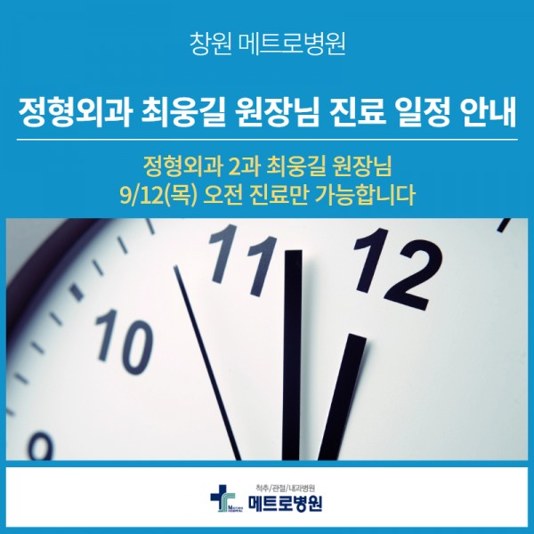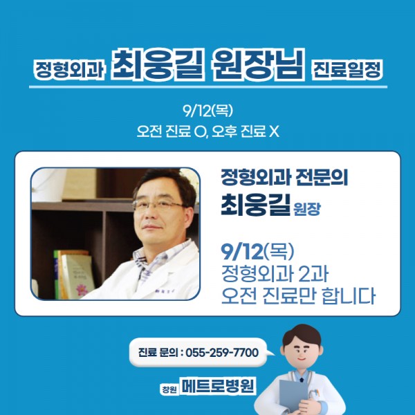 정형외과 2과 최웅길 원장님 9/12(목) 진료 일정 안내