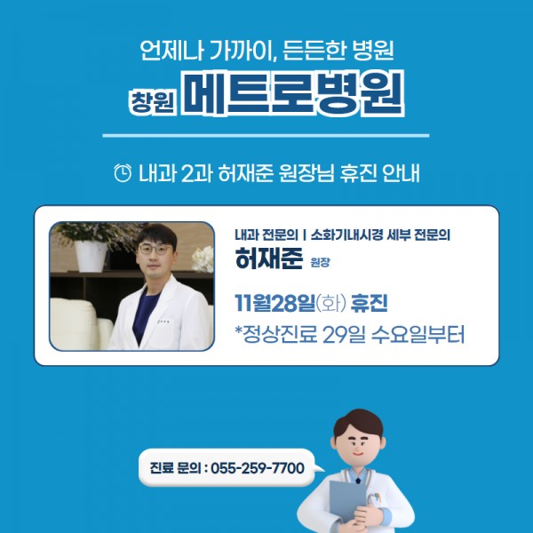 내과 2과 허재준 원장님 11월 28일(화) 휴진 안내