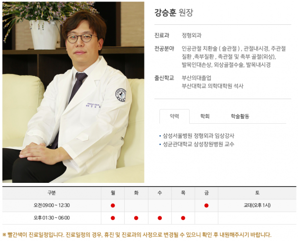 정형외과 8과 강승훈 원장님 월요일 오후 진료 안내