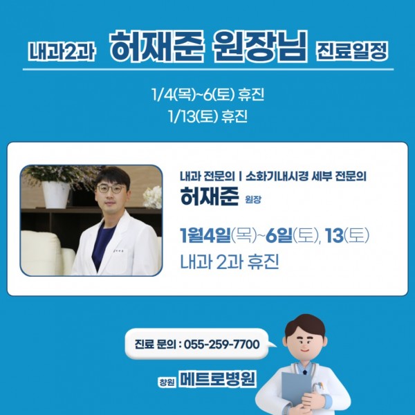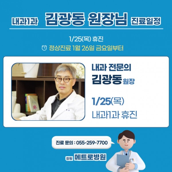 내과 1과 김광동 원장님, 2과 허재준 원장님 1월 진료 일정 안내