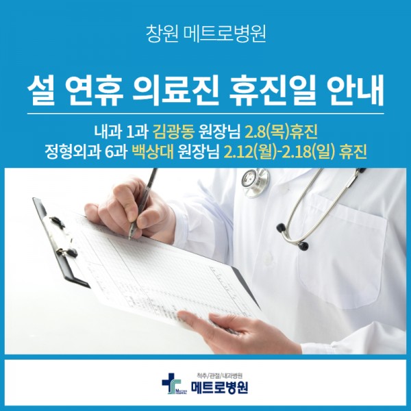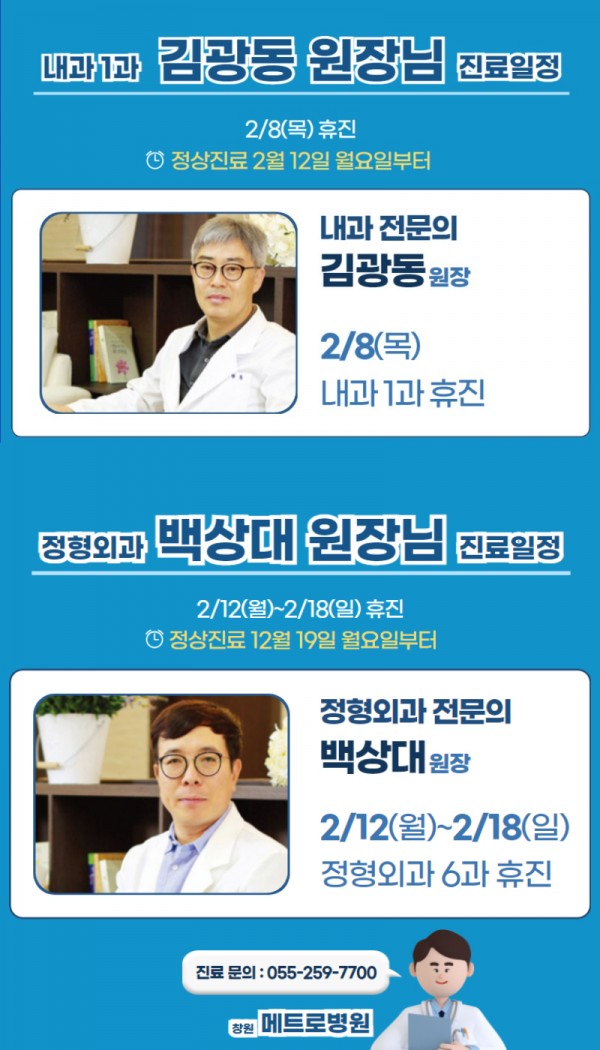 일부 원장님의 휴진일이 확정되어 안내 드립니다.