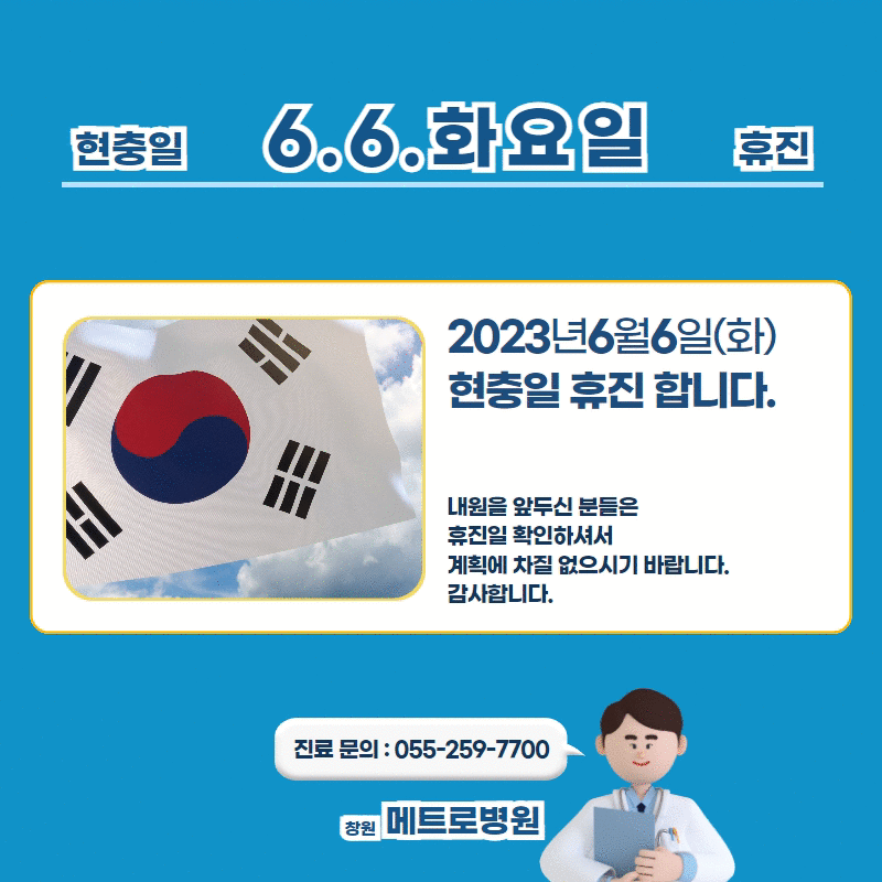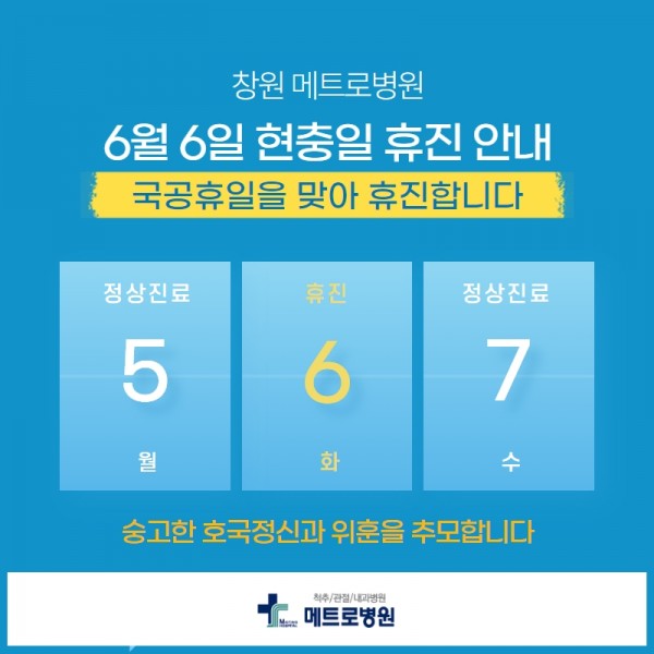 6월 6일 화요일은 국공휴일인 현충일을 맞아