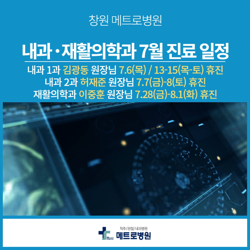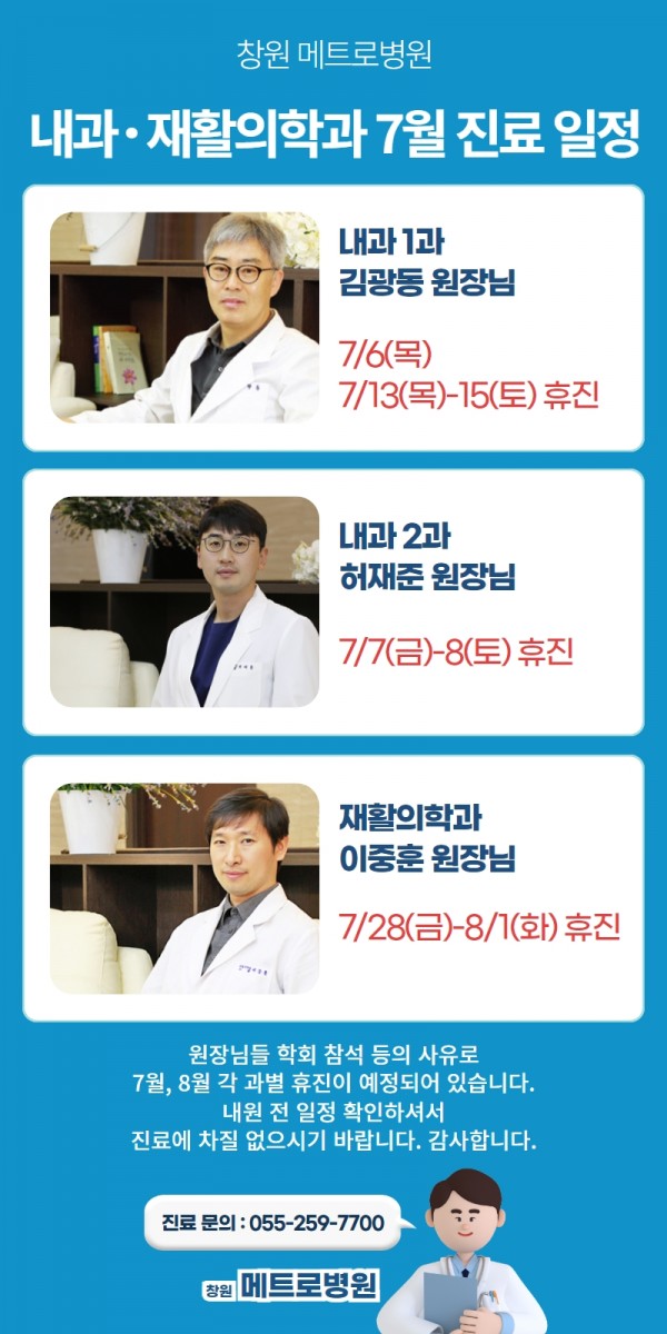 메트로병원 7월 내과, 재활의학과 원장님 진료 일정
