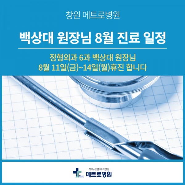 메트로병원 백상대 원장님 8월 휴진일 안내