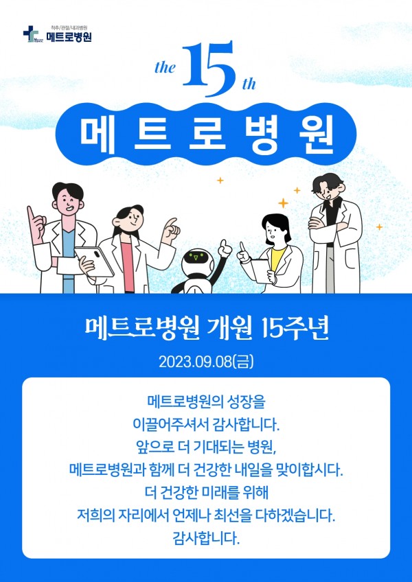 9월 8일은 메트로병원이 15년 전 처음 병원 문을 열고 진료를 시작한 날입니다.