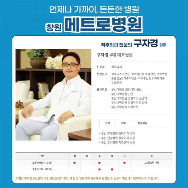 척추외과 구자경 원장님 진료 일정 안내_11/6(월) 정상진료 시작