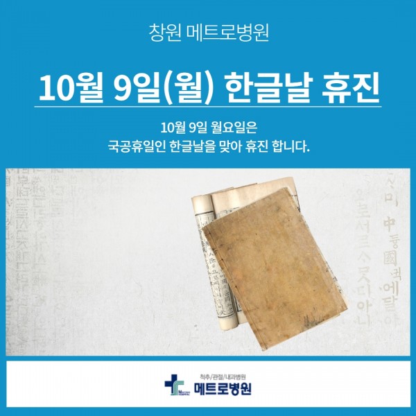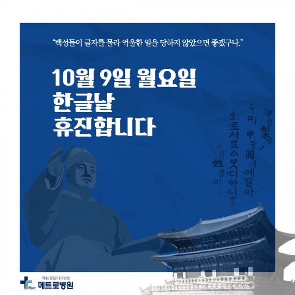 메트로병원 10월 9일(월) 한글날 휴진 안내