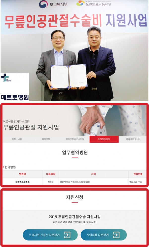 노인의료나눔재단 협약 체결, 무릎인공관절수술 지원 신청 안내