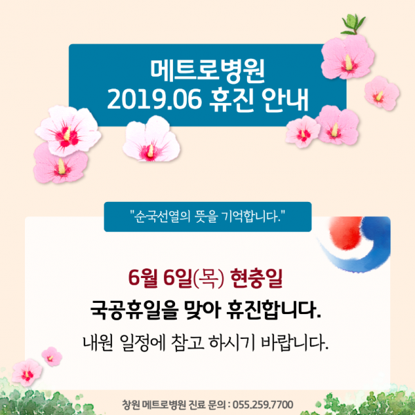 창원 메트로병원의 6월 진료 일정을 안내드립니다.