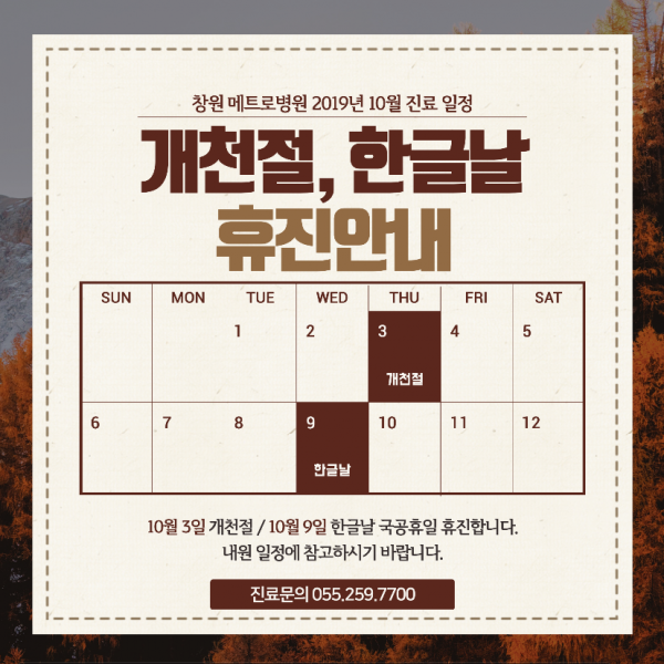 국공휴일을 맞아 외래진료 휴진 합니다.