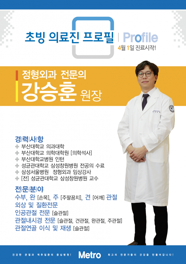 정형외과 전문의 강승훈 원장님이 4월 1일부터 진료를 시작합니다.