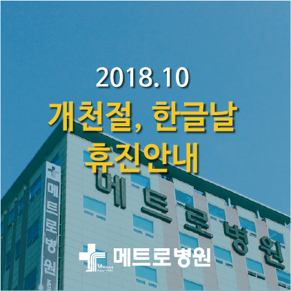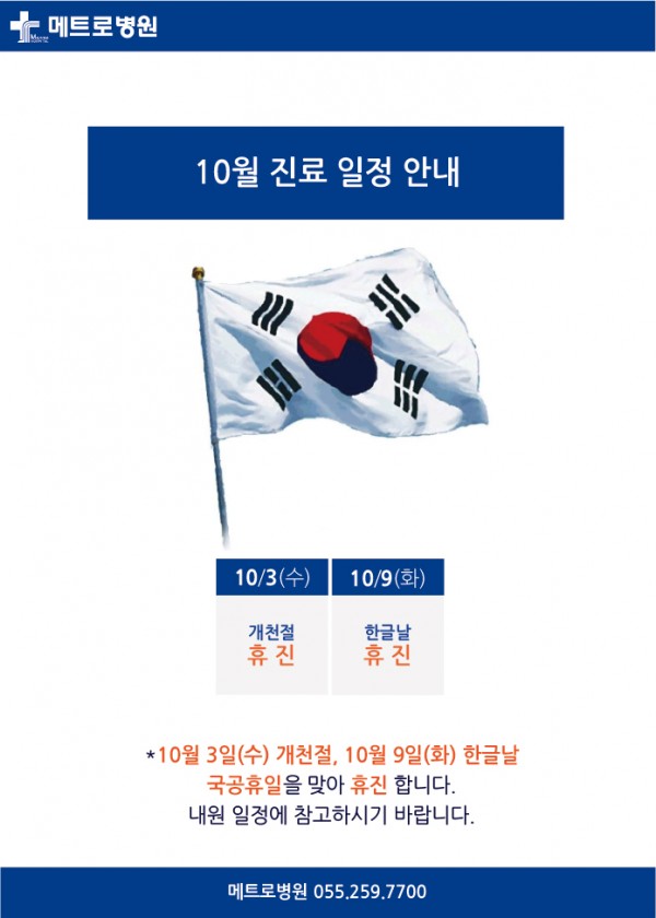 10월 9일(화) 한글날, 국공휴일을 맞아 휴진 합니다.