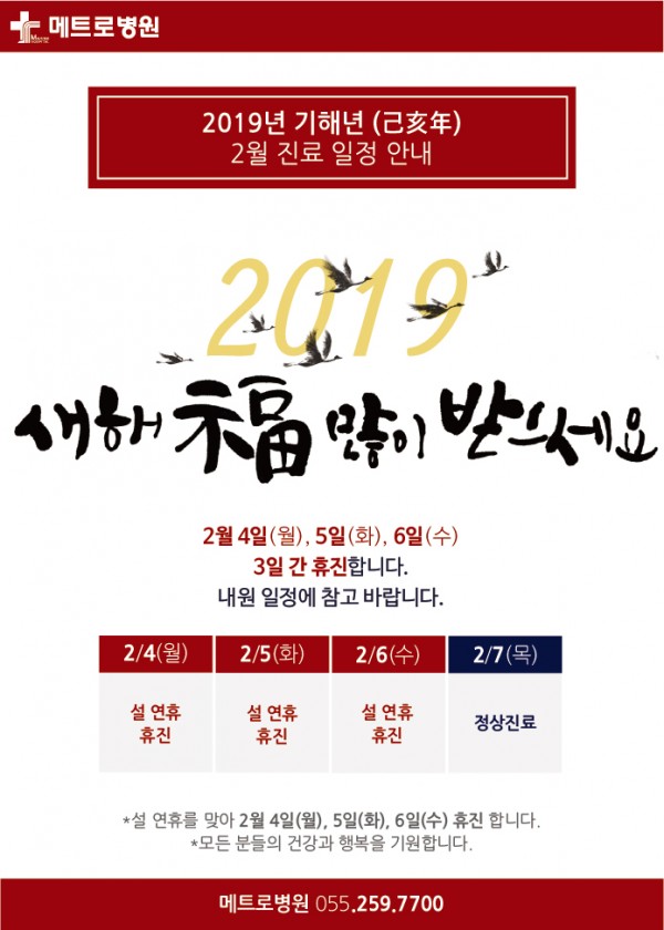 메트로병원 2월 신정연휴 휴진 안내와 새해 인사