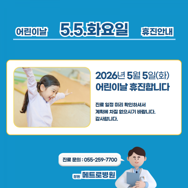 메트로병원 5월 5일(화) 어린이날 휴진 안내