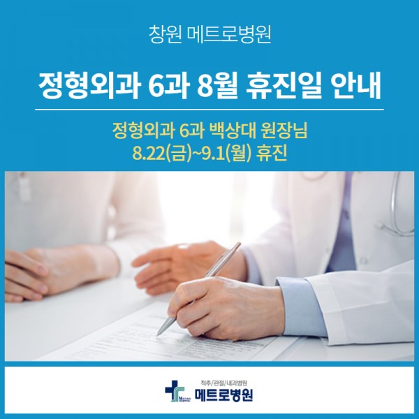 메트로병원 정형외과 6과 백상대 원장님 8월 휴진일 안내