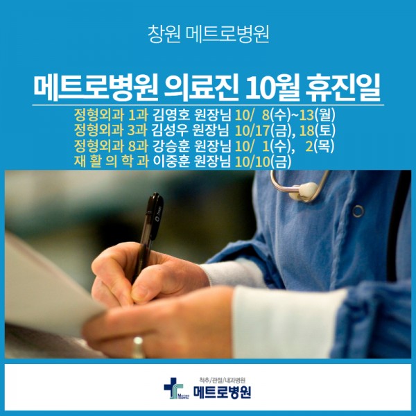 창원 메트로병원 정형외과, 재활의학과 10월 진료 일정 안내