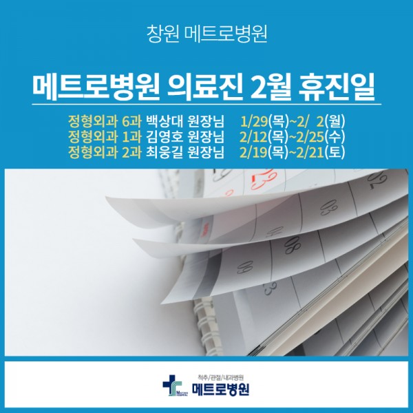 창원 메트로병원 정형외과 일부 2월 휴진 일정 안내