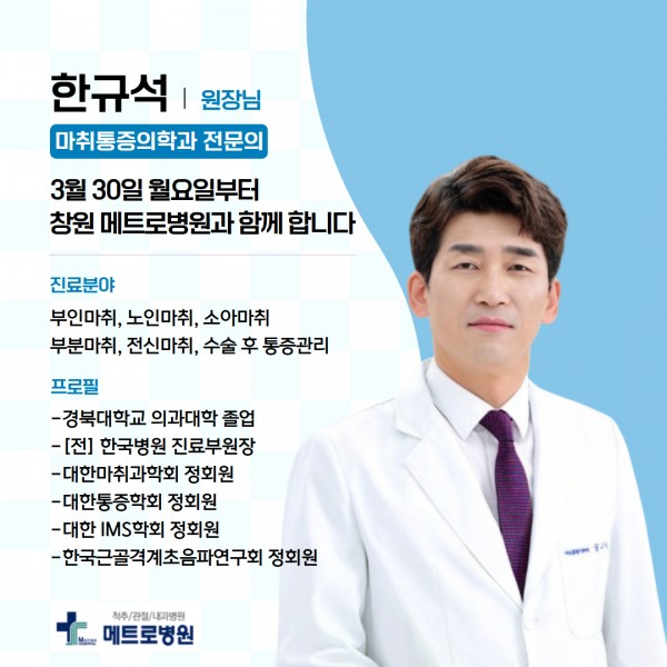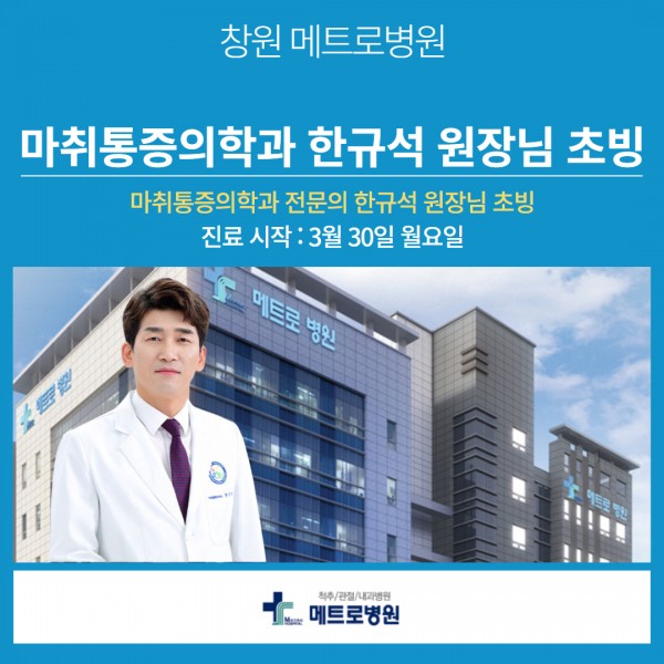 창원메트로병원 마취통증의학과 한규석 원장님 초빙 소식을 알립니다.