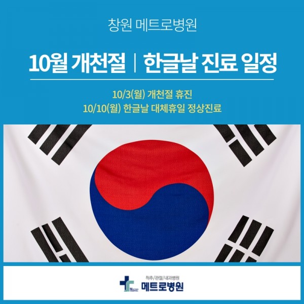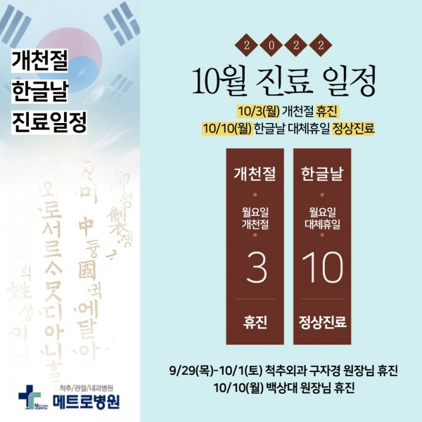 메트로병원 10월 개천절, 한글날 대체 휴일 진료 일정 안내