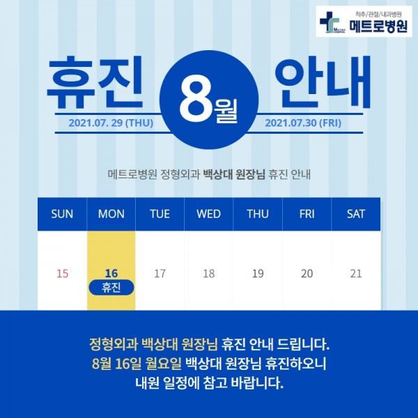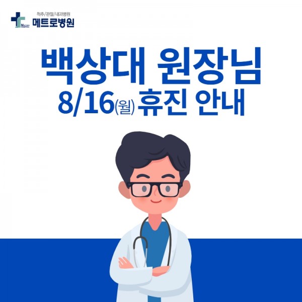 정형외과 백상대 원장님 8월 16일(월) 휴진 안내