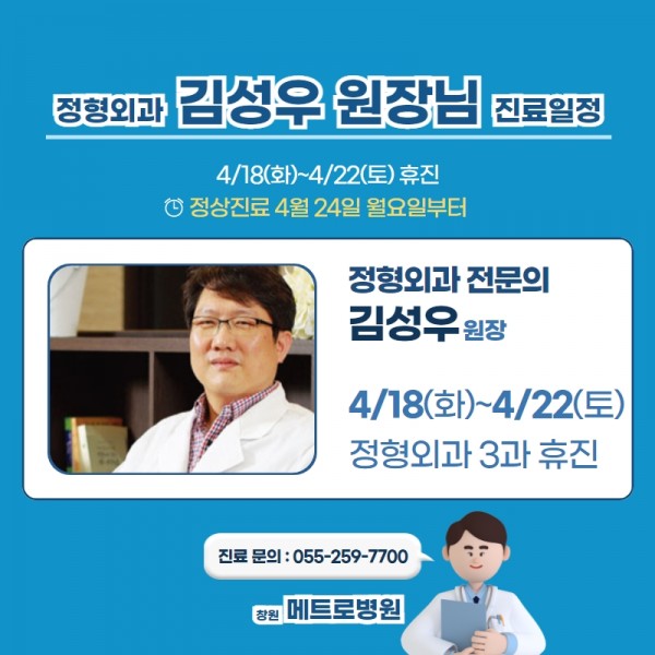 메트로병원 정형외과 3과 김성우 원장님 4월 휴진일 안내