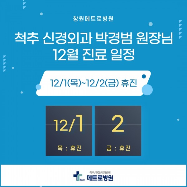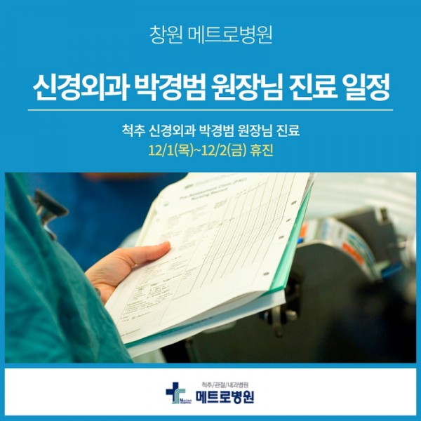 척추 신경외과 박경범 원장님 12월 1일(목)-2일(금) 휴진 안내