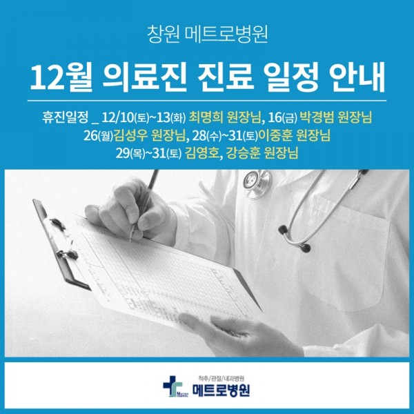 메트로병원 12월 의료진 일부 휴진일 안내
