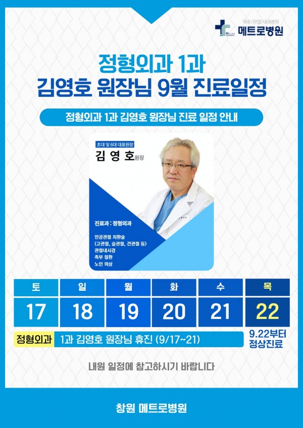 정형외과 1과 김영호 원장님 9월 진료 일정 안내
