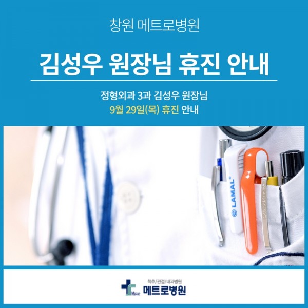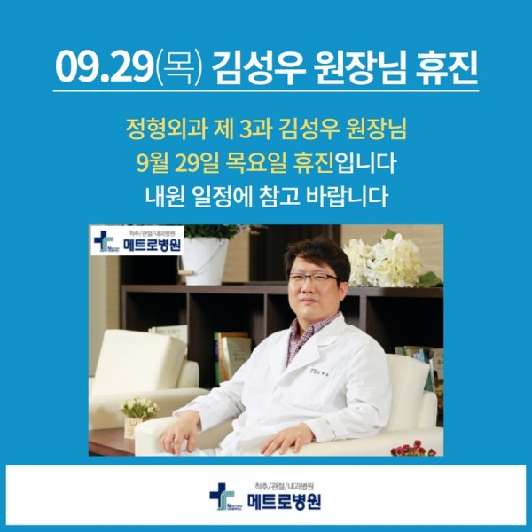 정형외과 제 3과 김성우 원장님 9.28(목) 휴진 안내