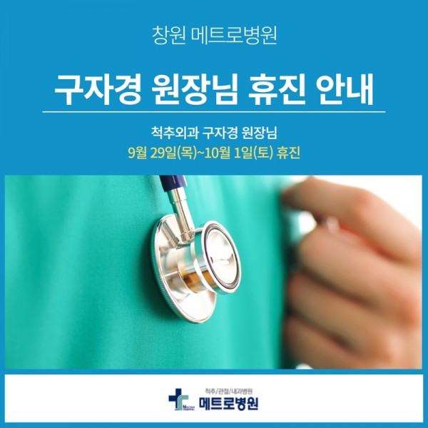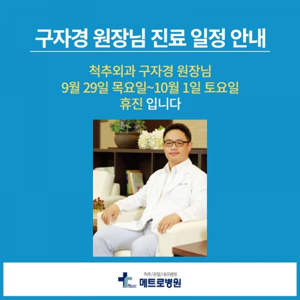 척추외과 구자경 원장님 9.28(목)~10.1(토) 휴진 안내