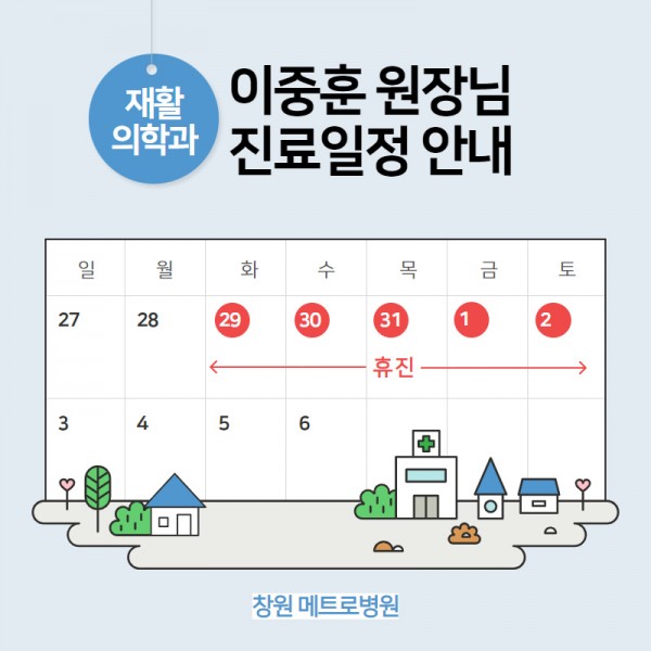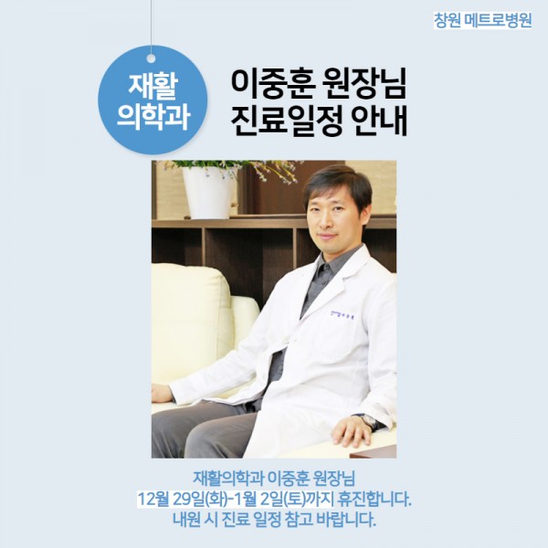 재활의학과 이중훈 원장님 휴진일(12.29~1.2) 안내