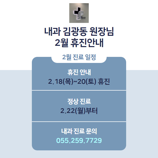 정상 진료는 2월 22일 월요일부터 시작합니다.