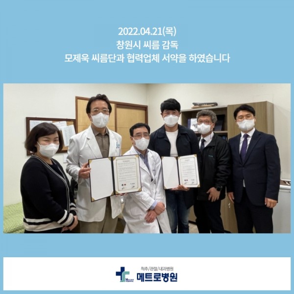 메트로병원이 창원시 씨름 감독, 모제욱 장사의 씨름단과 함께 합니다