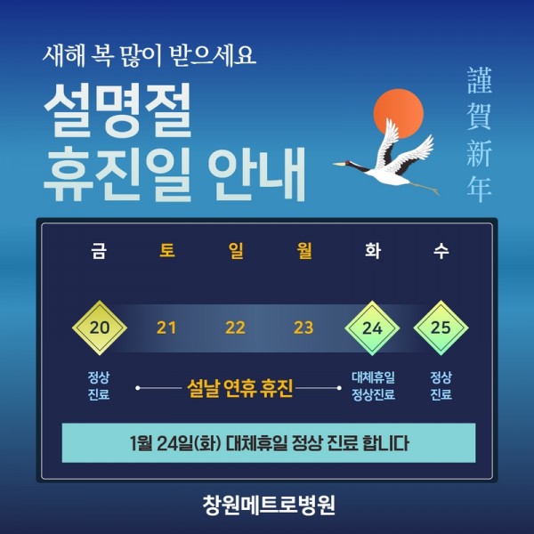 메트로병원 1월 설연휴 휴진일 안내(대체휴일 정상 진료)