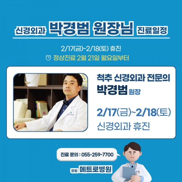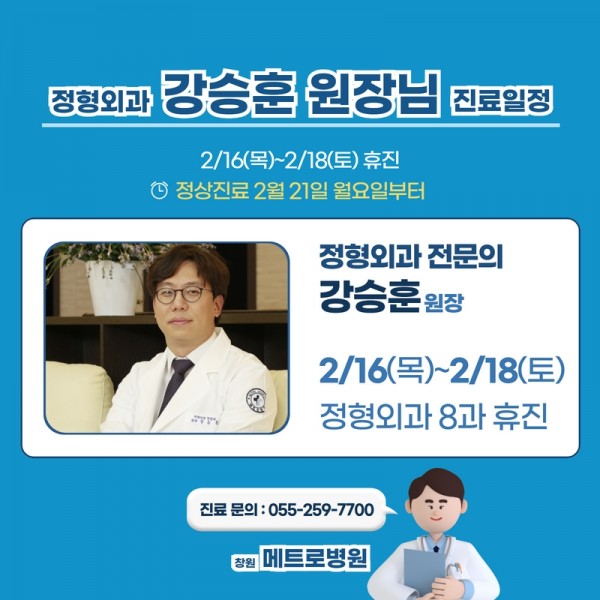 정형외과 강승훈, 신경외과 박경범 원장님 2월 진료일정 안내