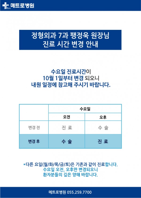 10월 1일부터 정형외과 7과 팽정욱 원장님