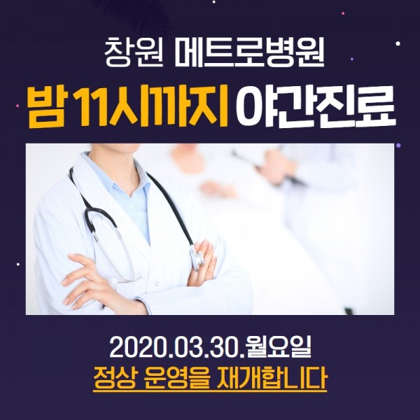 야간진료실 정상운영을 시작할 수 있게 되었습니다.