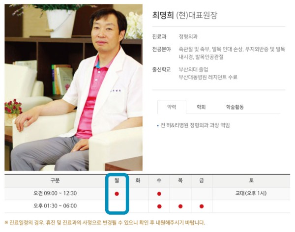 2018년 3월부터 변경된 일정으로 진료 하오니
