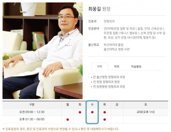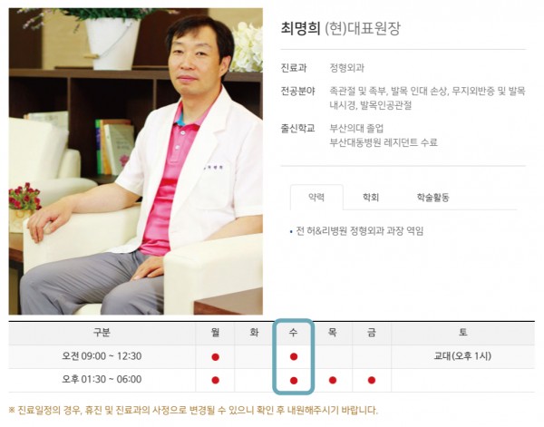 수요일 오전, 오후 모두 진료를 하십니다.