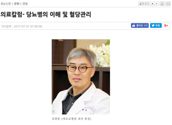 의료칼럼 - 당뇨병의 이해 및 혈당관리
