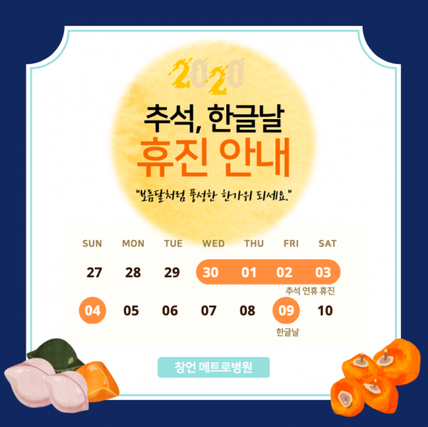 메트로병원의 2020년 추석연휴와 한글날 진료 일정을 안내드립니다.